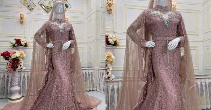 Rekomendasi kedua ada kebaya dengan model duyung berwarna rose gold. Kebaya yang satu ini memiliki pola jahitan yang membentuk tubuh sehingga penampilan pengantin dapat menjadi lebih feminin.