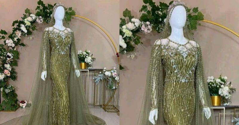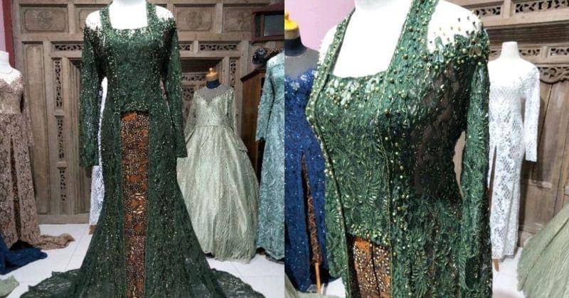 Rekomendasi terakhir ada kebaya model kutubaru bewarna army. Kebaya ini memiliki aksen ekor yang panjang sehingga membuat penampilan semakin mewah bak putri kerajaan.