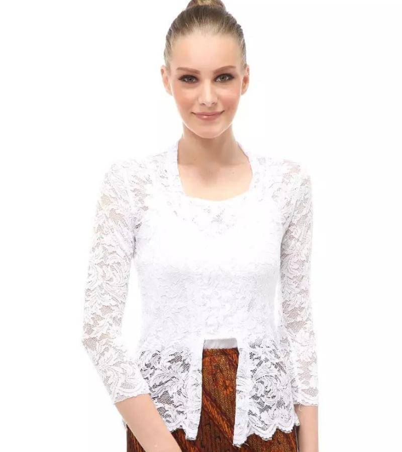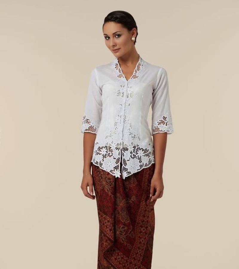 7. Kebaya putih klasik yang dipadukan dengan kain lilit