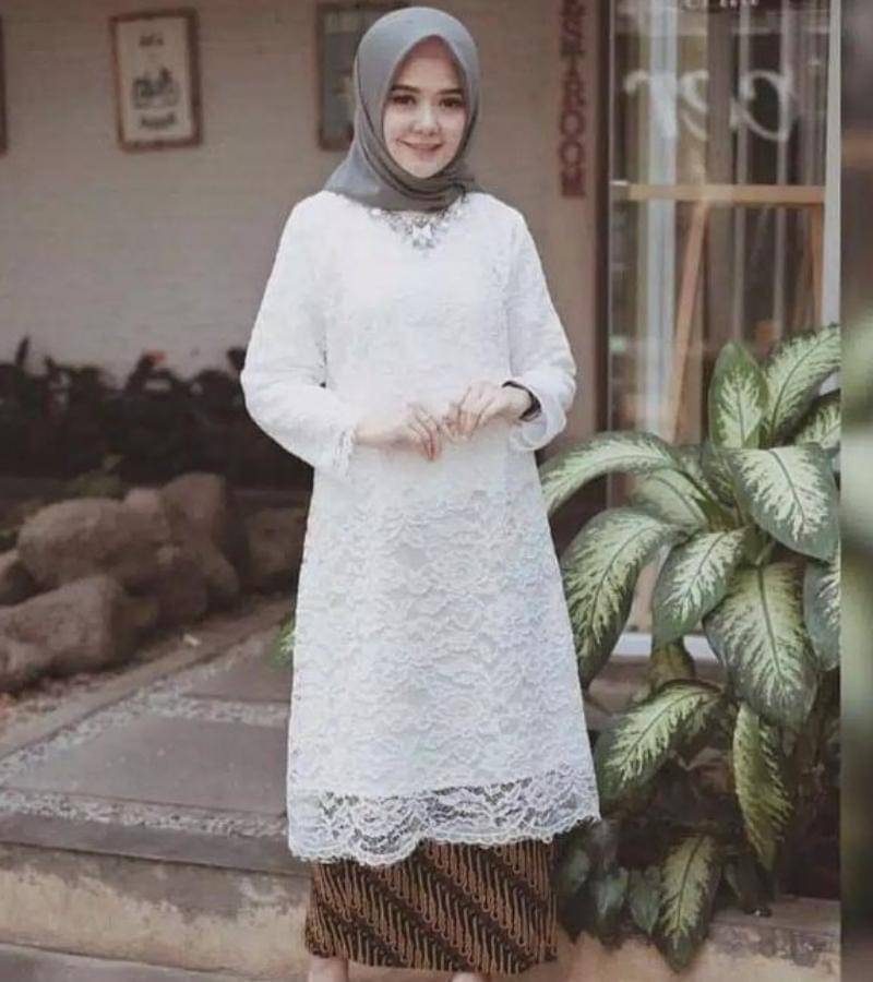 6. Untuk yang berhijab, kenakan kebaya putih brokat lengan panjang