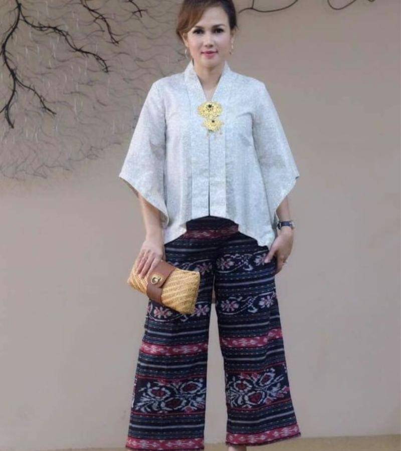 Kombinasi keduanya ini menciptakan harmoni yang indah antara keanggunan busana tradisional dan sentuhan gaya yang kontemporer.