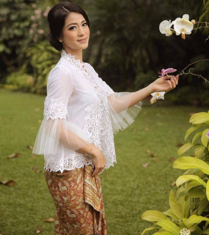 Kebaya putih dengan detail brokat tak hanya menonjolkan keanggunan, tetapi juga menyiratkan kemewahan yang tak terbantahkan.