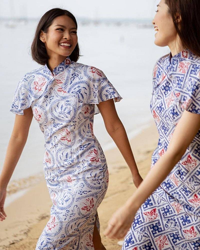 Selanjutnya adalah cheongsam batik dengan motif yang cerah. Warna pilihannya bisa biru, kuning, hijau, merah dan banyak lagi. Selain itu, potongannya tidak perlu melulu kaku seperti cheongsam klasik.