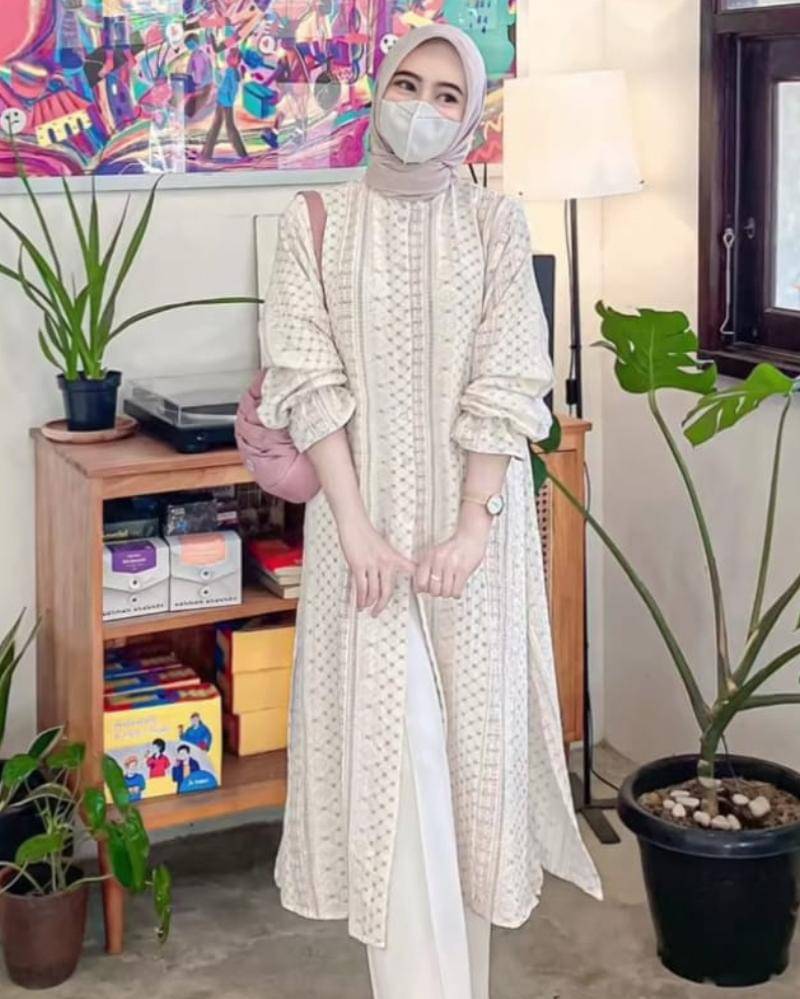 Selain itu, tunik ini dapat digunakan sebagai outer, memberikan kesan stylish yang effortless untuk dipadukan dengan berbagai jenis outfit.