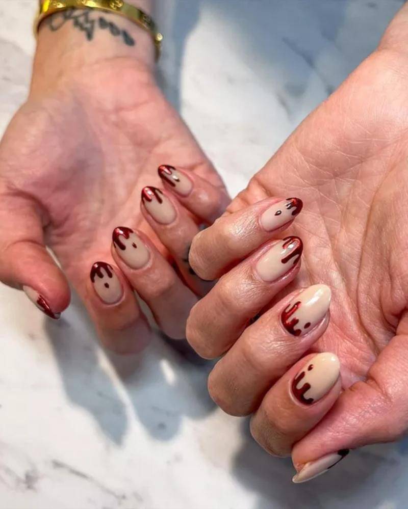 Marnae Orton, seniman senior dan pendidik di salon kuku di Washington, D.C., mengatakan bahwa cat kuku berdarah biasanya tidak dianggap menarik, tetapi versi krom merah ini, mungkin mengejutkan Mama. Ia menyarankan untuk menggunakan kuas garis halus untuk membuat desainnya.