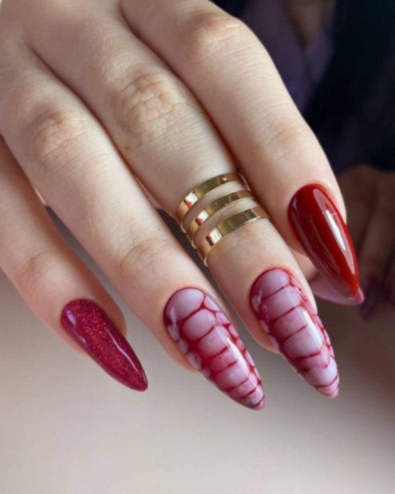 Terlebih, hiasan ini memberikan kesan berani dan anti-mainstream. Mama bisa membuat nail art motif sisik naga ini dengan warna putih sementara di kuku lainnya berwarna merah dan perpaduan glitter yang cantik.