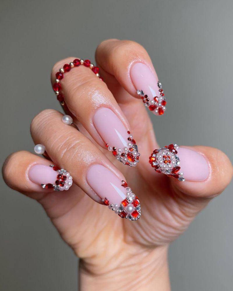 Jika Mama senang dengan warna merah muda atau pink namun tetap ingin identik dengan Imlek, nail art yang berikut cocok dicoba.