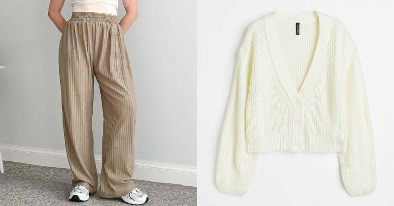 Apabila tertarik dengan style yang satu ini, Mama bisa membeli celana kulot nya di Shopee AAfashionstore sementara cardigan di situs resmi H&M.