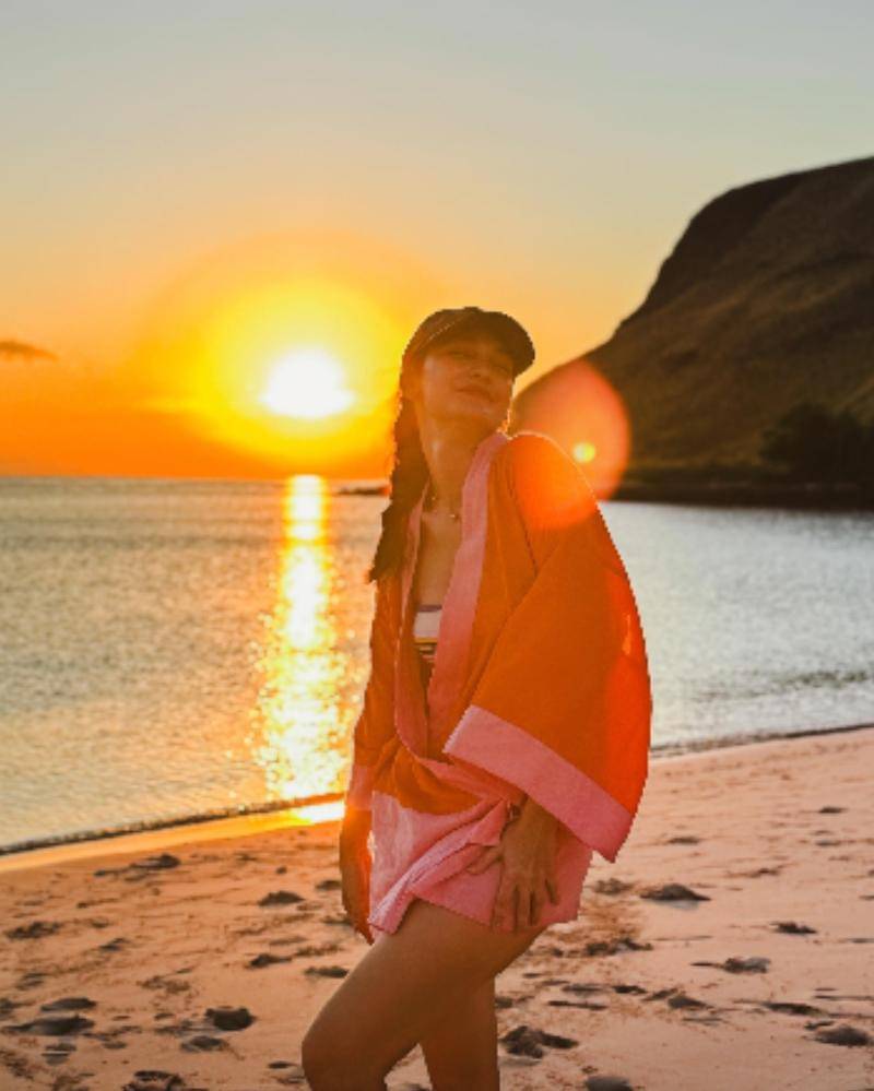 Sesampainya di Sumbawa, Luna tidak menyianyiakan waktu dan langsung ingin menikmati matahari yang hangat. Ia pun terlihat mengenakan baju renang dengan motif yang menggemaskan.