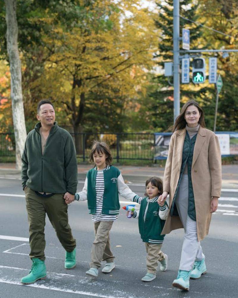 Kamu bisa mengikuti gaya keluarga satu ini dengan memakai outfit berwarna hijau, cokelat, putih, dan hitam.
