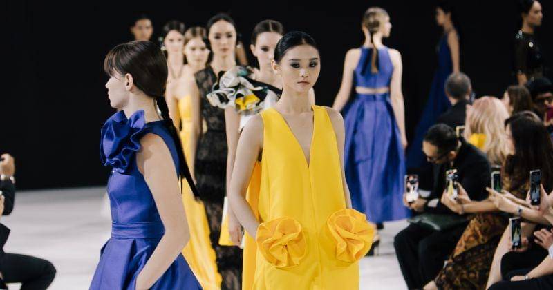 Paduan dari kain sequins, ombre gelap-terang hingga warna bold hadir dalam koleksinya yang dipresentasikan pada Kamis (2/10/2023) di ballroom The Langham, Jakarta, dalam program Fashion Soiree, hasil kerjasama antara The Langham, Jakarta, dengan IPMI (Ikatan Perancang Muda Indonesia).