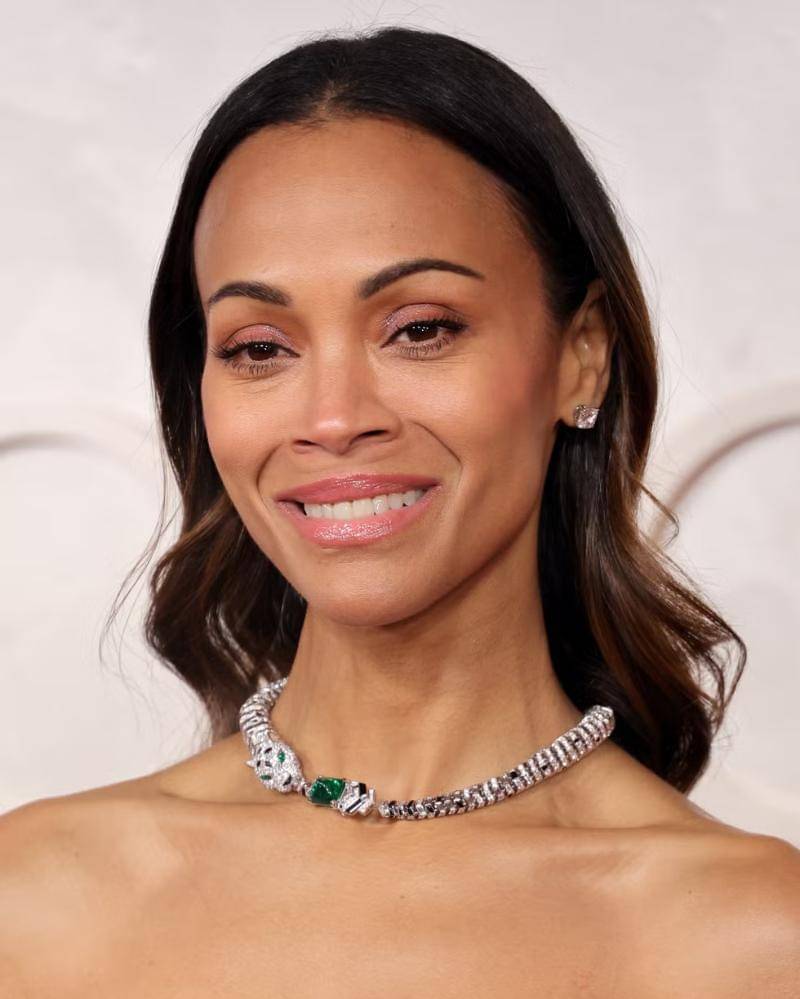Penata rias selebriti Vera Steimberg, bekerja sama dengan Zoe Saldana untuk Armani Beauty, menciptakan tampilan make up berwarna perunggu yang cemerlang, selaras dengan gaun sang aktris. Steimberg menekankan proses kolaboratif tersebut, dengan menyatakan bahwa mereka bertujuan untuk menonjolkan fitur alami Saldana dengan warna-warna yang saling melengkapi.
