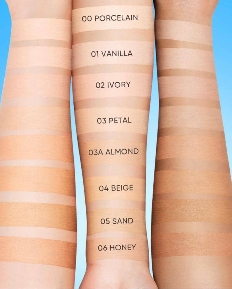 Cushion ini juga tersedia dalam 8 shades untuk semua warna kulit, yang terdiri dari Porcelain, Vanilla, Ivory, Petal, Almond, Beige, Sand, Honey.