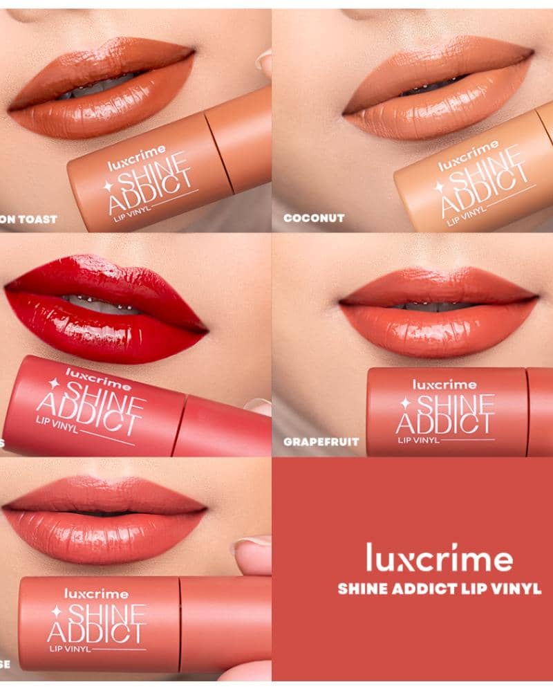 Memperkenalkan Shine Addict Lip Vinyl, lipstik cair dengan kilau tinggi yang memadukan kecerahan memukau dengan pemakaian dan kenyamanan yang tahan lama. Hias bibirmu dengan lapisan warna mewah dan berpigmen tinggi yang memberikan warna menyeluruh dalam satu sapuan.