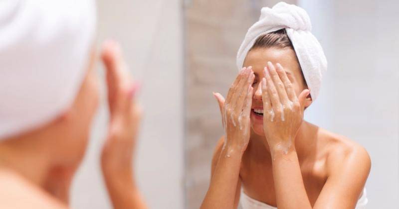 Selain tabir surya, langkah perawatan kulit yang paling penting adalah mencuci wajah setiap malam. Ini menghilangkan penumpukan kotoran di siang hari, seperti makeup dan polusi, yang menghambat perbaikan kulit saat tidur.