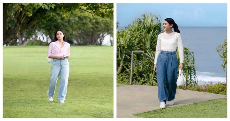 Pasti Mama punya satu jeans andalan yang bisa jadi penyelamat fashion di setiap saat. Maudy juga punya yaitu jeans klasik dengan potongan lebar lurus dengan pinggang high waist.