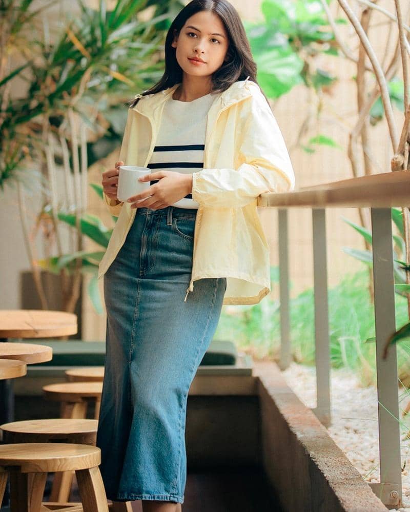 Gaya ini memberikan kesan yang sporty namun tetap manis. Apalagi jaket parka ini mampu melindungi kulit Mama dari paparan sinar UV karena menggunakan bahan UPF50+.
