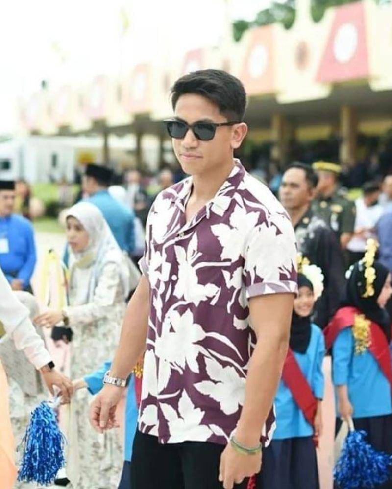 Dari salah satu foto yang beredar di Instagram, terlihat Pangeran Abdul Mateen tampil kasual mengenakan kemeja mauve dengan motif bunga warna putih. Dia memadukannya dengan celana panjang hitam.