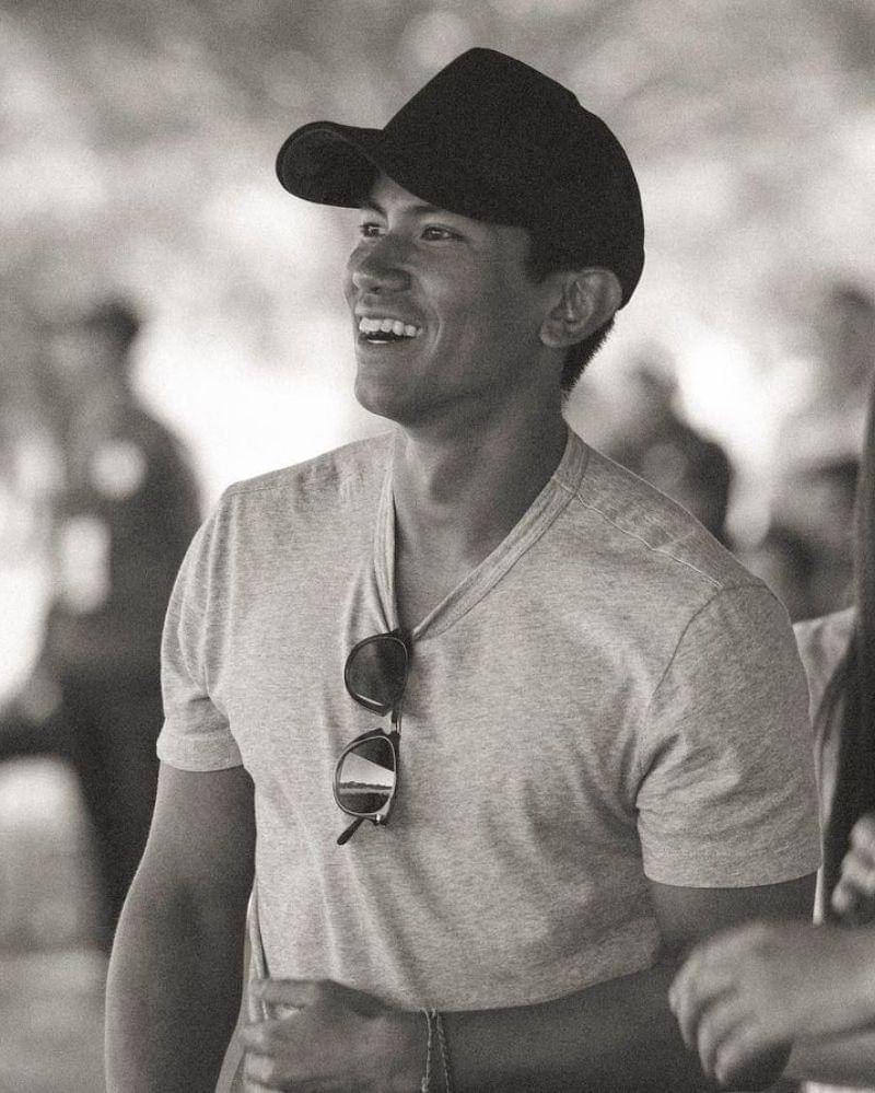 Gaya kasual kembali terlihat dari foto hitam putih yang diunggahnya ke Instagram. Ia terlihat santai mengenalan slim fit t-shirt warna terang yang membuat otot lengannya terlihat jelas.