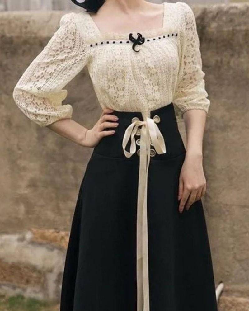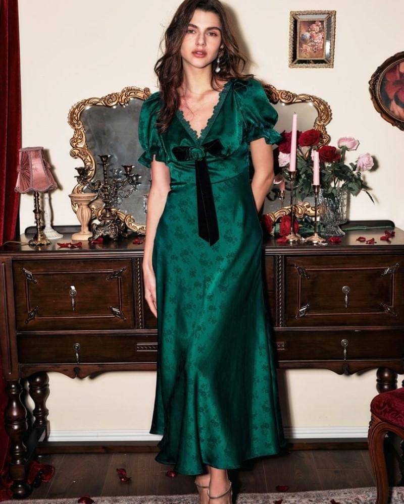 Potongan dress bisa menggunakan detail ala vintage seperti puffy shoulder atau aksen pita di area belahan dada.
