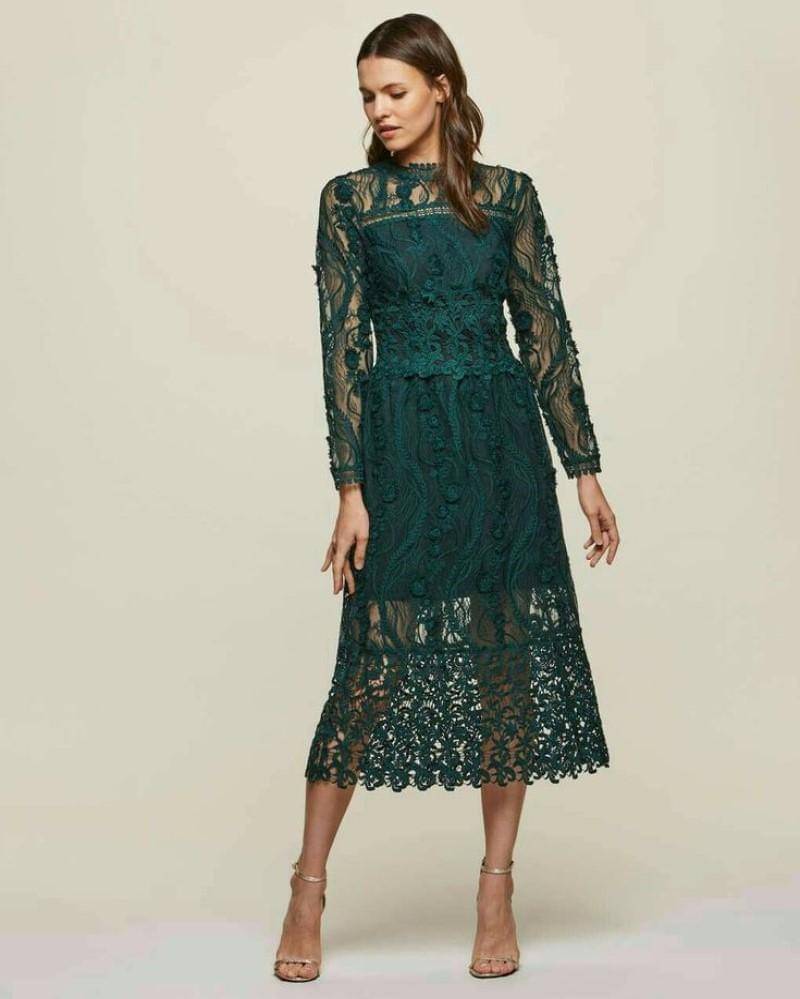 Bukan kebaya, kali ini adalah dress brokat yang bisa jadi inspirasi model baju Natal wanita terbaru di tahun 2024. Mama bisa memilih motif yang padat atau see through seperti ini.