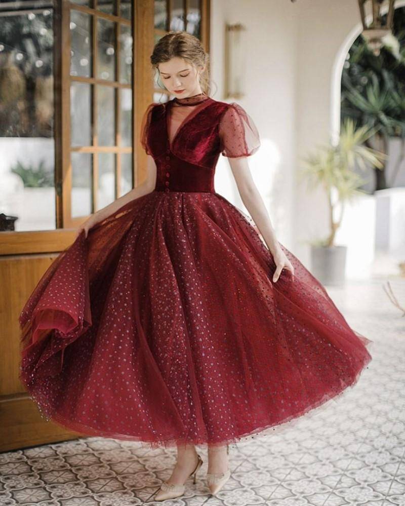 Di hari Natal, outfit dress adalah pilihan aman banyak perempuan. Namun, kebanyakan modelnya hanya itu-itu saja. Untuk dress yang berbeda, Mama bisa menggabungkan velvet dan tulle.
