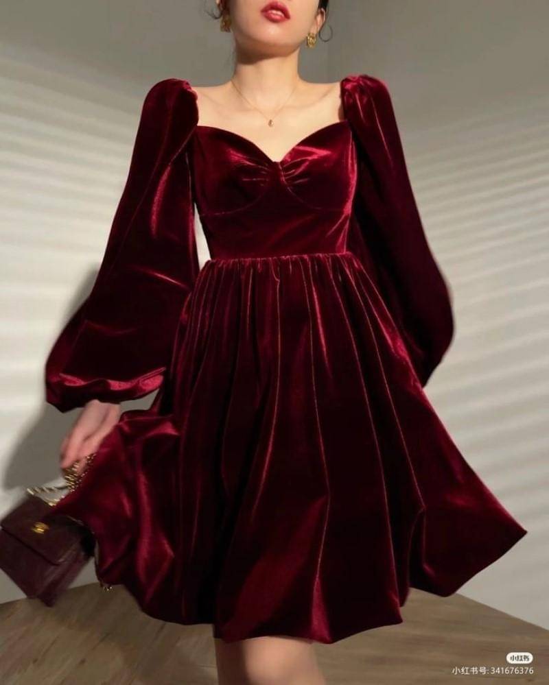 Dress yang satu ini cocok untuk Mama yang ingin tampil elegan. Bahan beludru memang terlihat mewah bagi siapa saja yang mengenakannya.