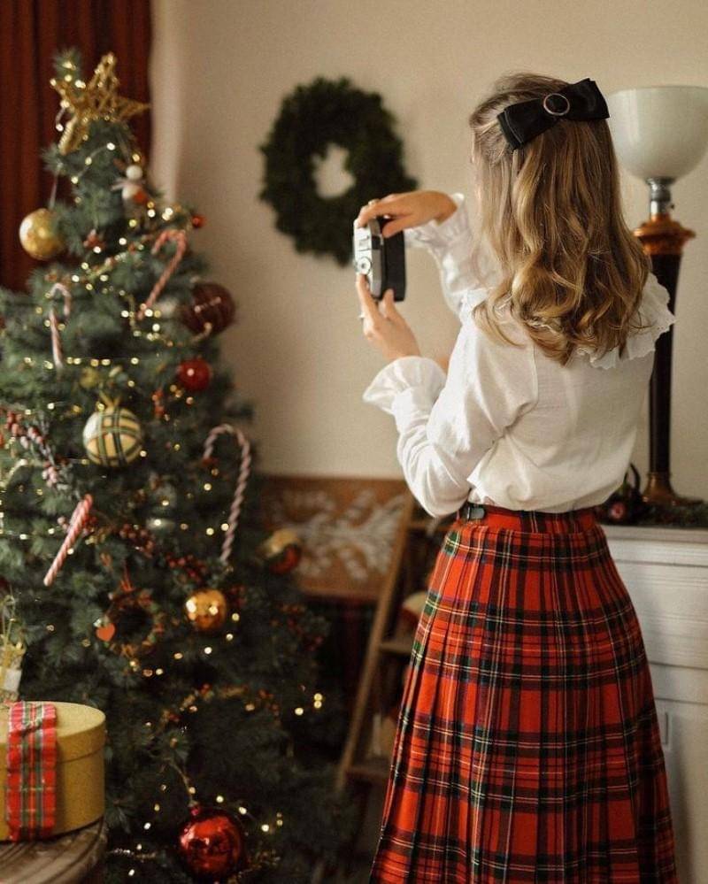 Selanjutnya, ada pilihan kemeja dan rok. Hanya saja, pemilihan kemeja dan rok sangat berpengaruh untuk outfit Natal kali ini.