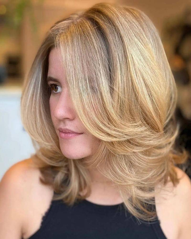 Gaya rambut ini memiliki bagian rambut yang lebih panjang di depan untuk membingkai wajah.