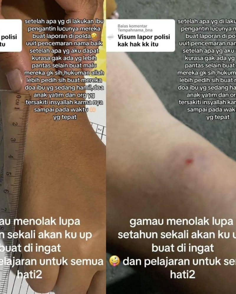 MUA itu juga membagikan beberapa foto sebagai bukti luka-luka yang dideritanya setelah diduga mengalami kekerasan dari pihak keluarga pengantin. Foto-foto tersebut menunjukkan kondisi fisiknya pasca insiden, menyoroti dampak serius yang dialaminya akibat tindakan tersebut.