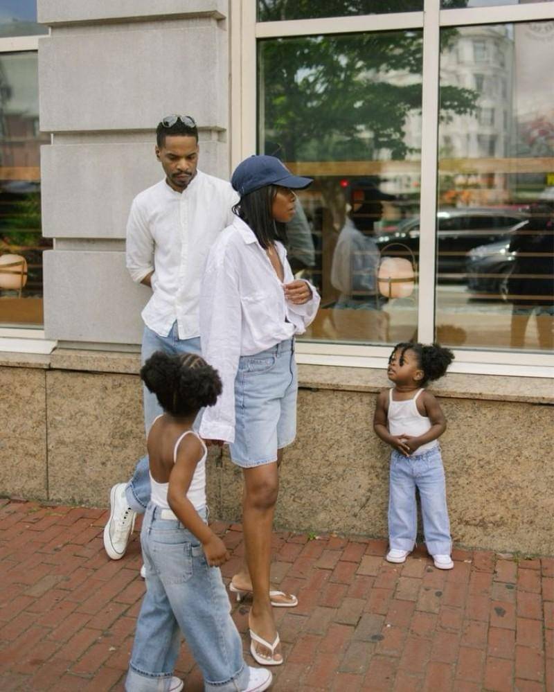 Outfit yang takkan salah adalah jeans. Mama bisa mengatur celana jeans yang kembaran bersama seluruh anggota keluarga. Sedangkan atasannya, pilih warna putih.