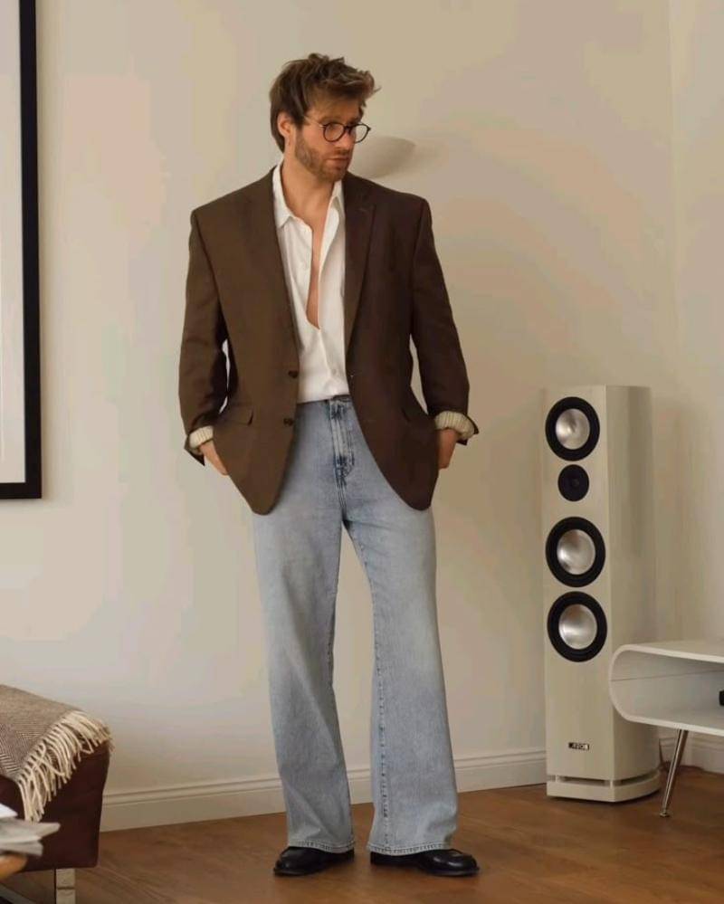 Padukan dengan jas berwarna cokelat yang membuat tampilanmu semakin stylish. Serta, lengkapi tampilanmu dengan sepatu loafer atau chunky, berwarna hitam.