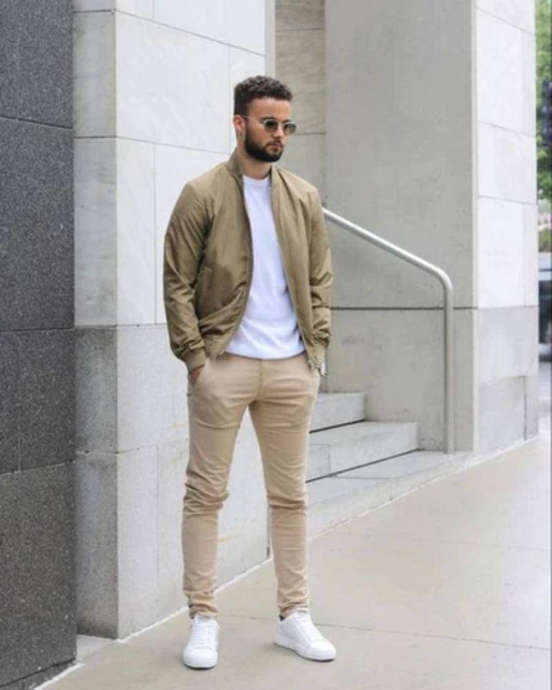 Pada Hari Valentine ini, para laki-laki juga dapat tampil bergaya namun tetap nyaman dengan memadukan celana chino dengan kaus putih dan jaket bomber. Outerwear yang pas akan jadi temanmu untuk melengkapi tampilan yang kasual.