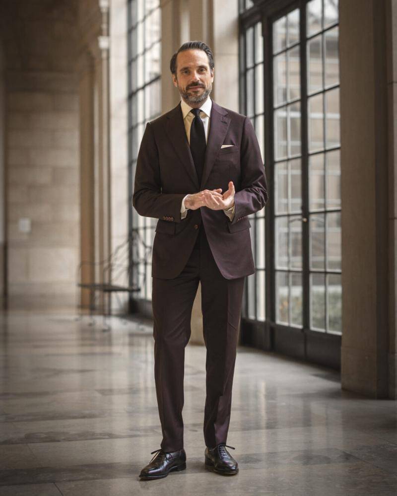 Untuk acara makan malam Papa di Hari Valentine, setelan jas merah anggur menawarkan nuansa yang modern dan tidak terlalu mencolok pada skema warna hari spesial ini. Gaya yang satu ini adalah pilihan yang halus namun bergaya yang memancarkan rasa percaya diri, memadukan gaya, dan modernitas.