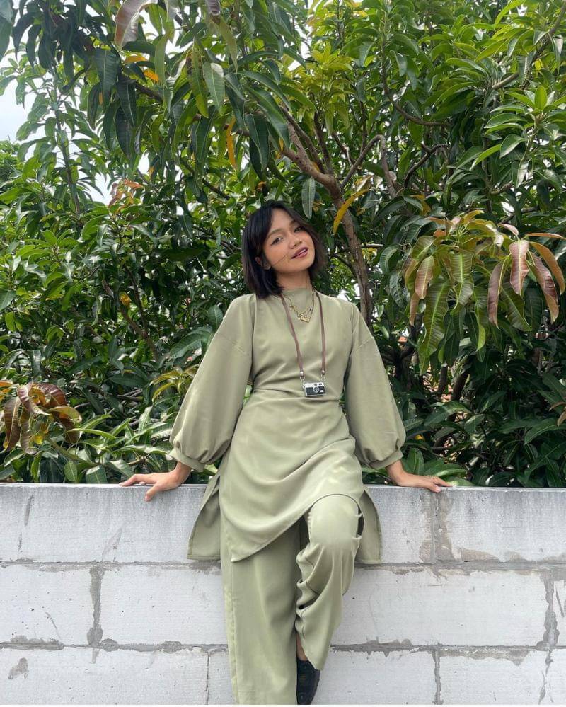 1. Pakai warna yang tengah ngetren, Fathia Izzati memilih outfit berwarna hijau sage