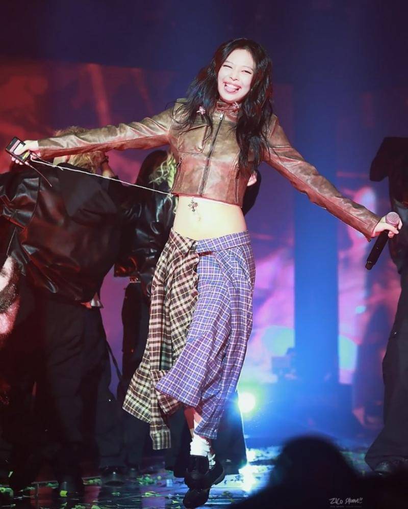 Pada konser Zico, Jennie BLACKPINK memberikan penampilan yang begitu memesona. Ia mengenakan atasan berupa jaket kulit cokelat, dengan potongan crop. Serta, kaus kaki putih dan sepasang sneakers yang nyaman.
