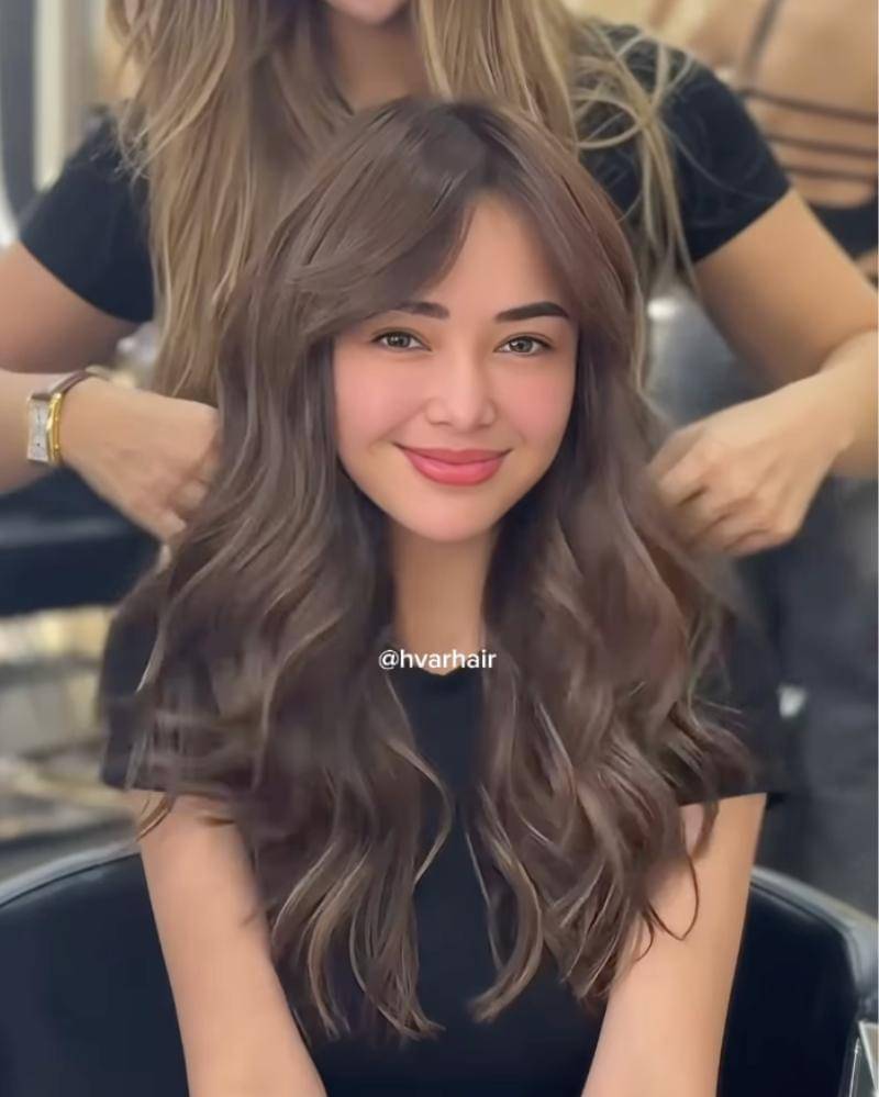 Kesan manis dan feminin yang terpancar dari poni tersebut, dipadukan dengan warna rambut cokelat terang, memberikan nuansa awet muda dan modern. Tampilannya pun semakin memukau, terutama saat rambut terkena cahaya.