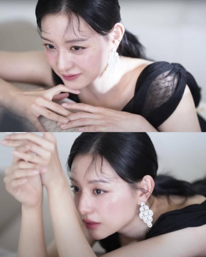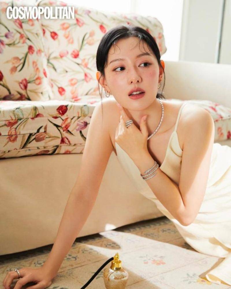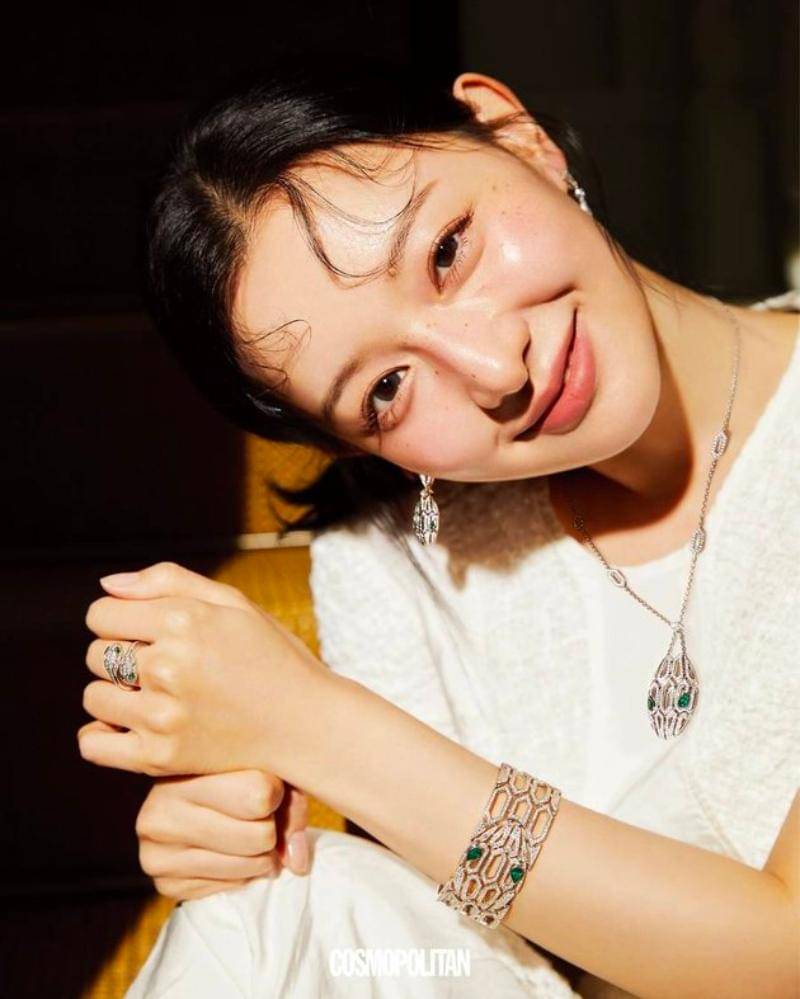 Tak berhenti disitu, Kim Ji Won terlihat kembali memakai serangkaian perhiasan mewah berwarna emas putih, dengan detail pola seperti sisik ular. Sambil duduk di lantai dan berpose, keanggunan perempuan satu ini semakin terpancar.