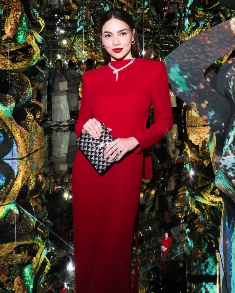 Penyanyi sekaligus model asal Vietnam, Ho Ngoc Ha menjadi salah satu tamu undangan di pameran Bulgari Serpenti. Ho terlihat menawan dalam balutan busana serba merah. Gaun yang ia kenakan menutup bagian dada dan sebagian leher dengan indah. Memberikan tampilan sophisticated.