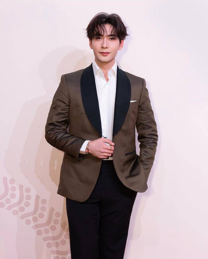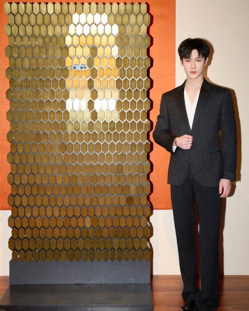 Aktor sekaligus penyanyi Tiongkok, Li Yun Ri tampil dengan daya pikat tinggi. Pemeran The Last Immortal ini, hadir mengenakan setelan gagah berupa, kemeja putih tanpa kerah dan jas abu-abu bertekstur.