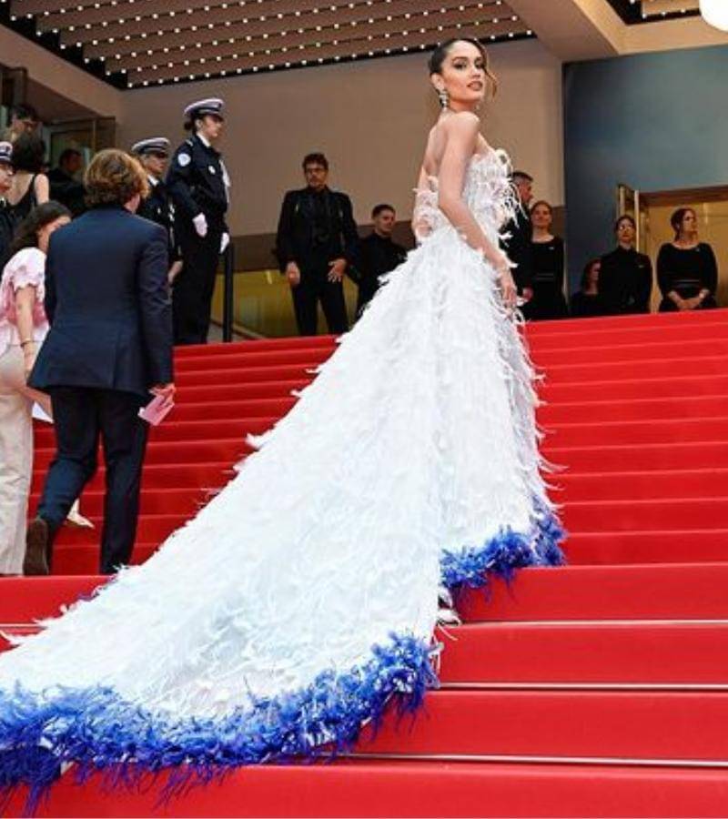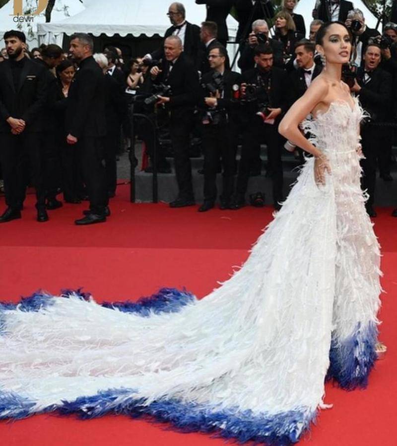 Penampilan Cinta Laura saat melenggang di karpet merah Cannes Film Festival berhasil memukau ribuan pasang mata, mengenakan gaun putih dengan detail bulu burung jalak Bali.