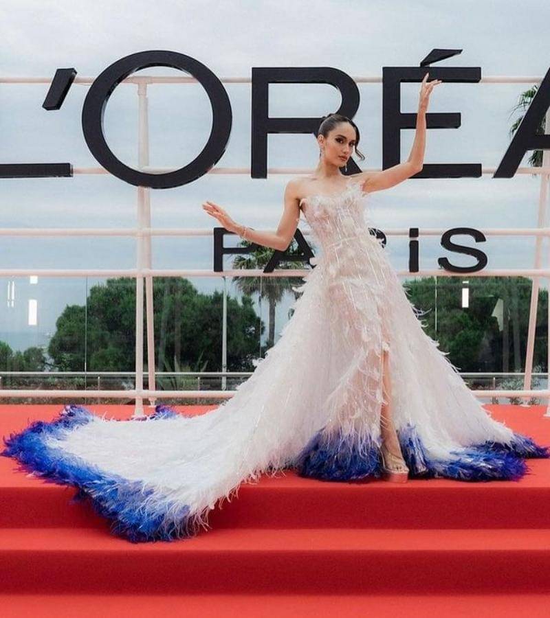 Penampilan Cinta Laura Kenakan Gaun Jalak di Cannes Film Festival 2024