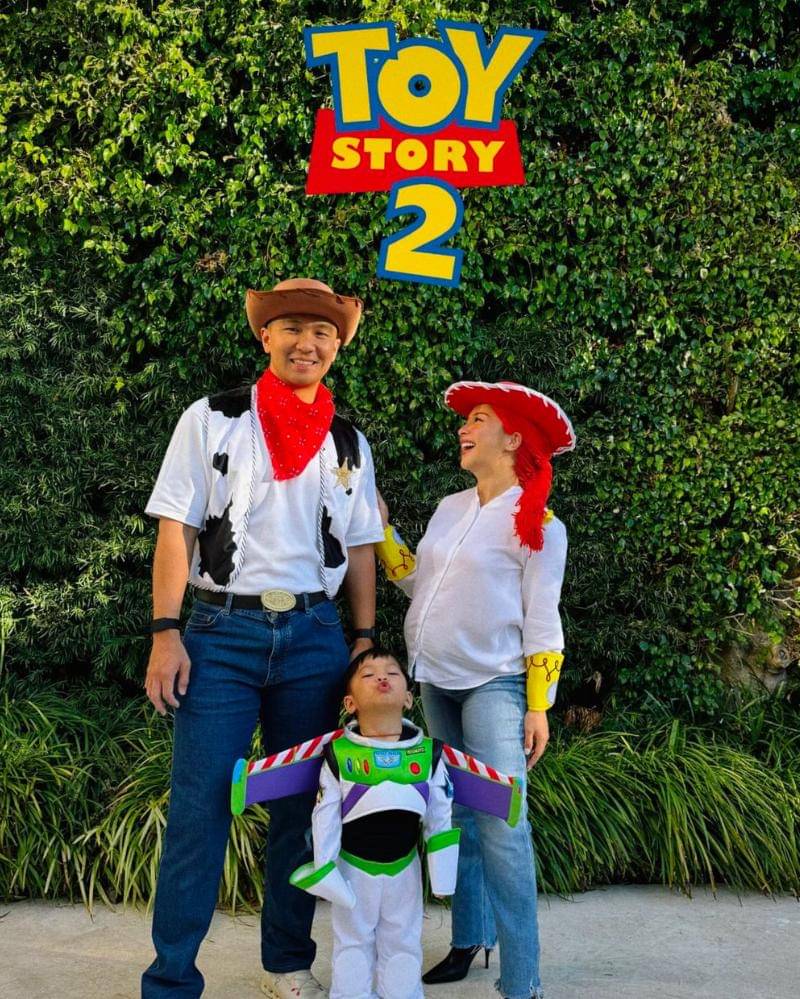 Yang paling lucu merupakan anak mereka, Issa Xander. Issa terlihat menggunakan kostum karakter Buzz Lightyear. Lengkap dengan sayap yang terbuka. Menunjukkan kostum ala astronot luar angkasa.