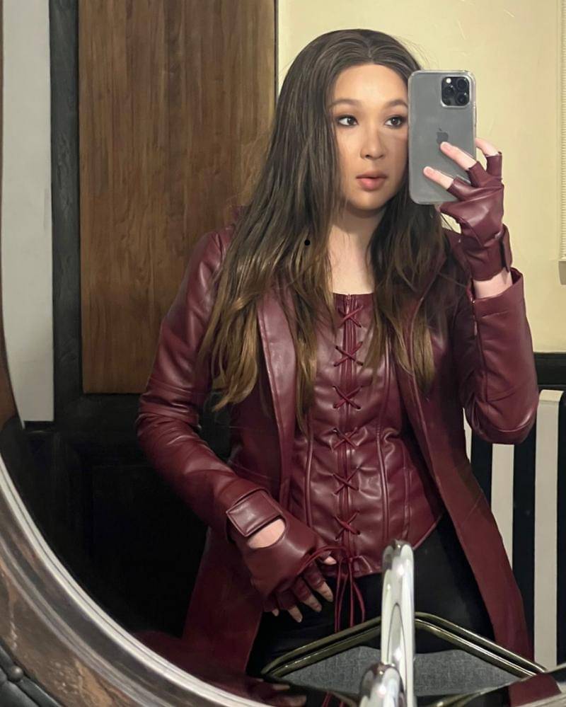 Ia pun memberikan tampilan yang menarik, karena menunjukkan Wanda versi Asia. Agatha menggunakan busana berbahan kulit, dengan warna maroon, khas Wanda. Lengkap dengan coat panjang dan sarung tangan, yang menunjang penampilannya.