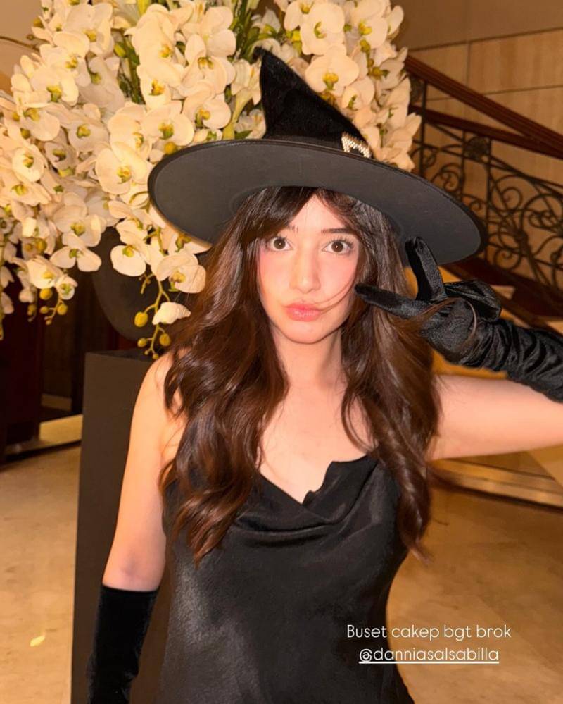 Ada juga Dannia Salsabilla, pesinetron yang kini seringkali memerankan berbagai judul sinetron di layar kaca. Perempuan satu ini memilih untuk berdandan sebagai penyihir.