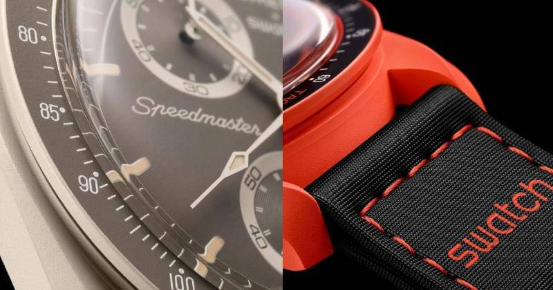 Jahitan atas yang kontras dengan warna casing memberikan sentuhan akhir yang trendi. Logo OMEGA X SWATCH menghiasi pelat jam dan kenop, menjadi pengingat kolaborasi luar biasa antara dua merek ikonik.