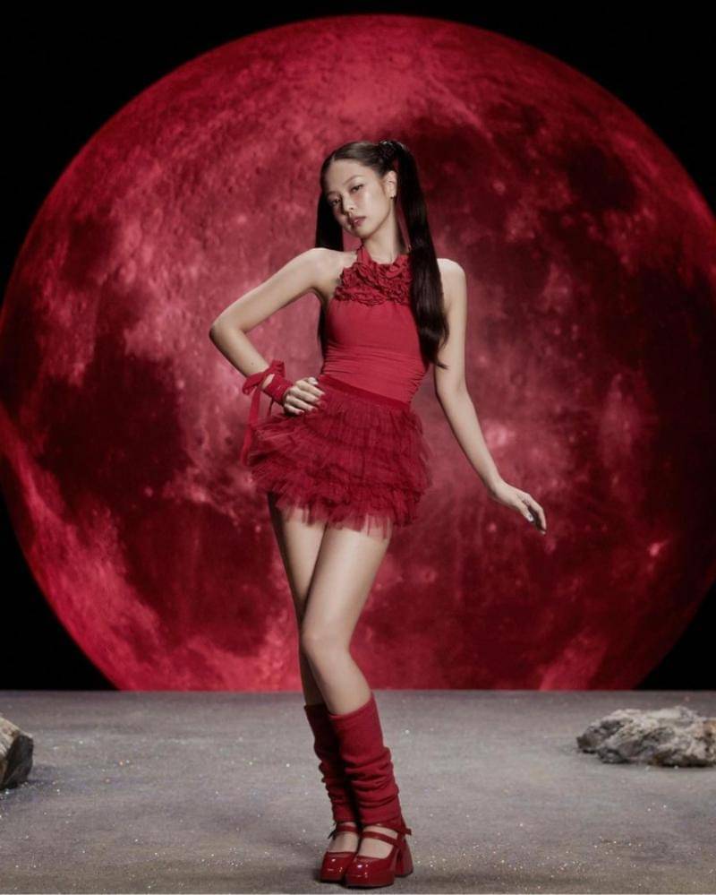 Dengan diapit barisan backup dancers, Jennie muncul dengan menggunakan busana serba merah, dari atas kepala hingga kaki. Busana tutu yang biasanya dikenakan para balerina, sepertinya juga menjadi signature look Jennie. Beberapa kali, ia terlihat menggunakan tutu sebagai busananya.