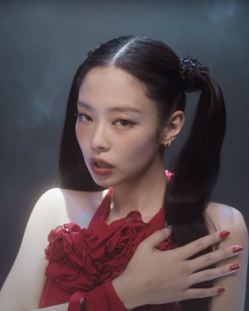 Gaya rambut yang satu ini, juga menjadi ciri khas Jennie. Two sided ponytails yang diikat tinggi di masing-masing sisi kepala, memberinya penampilan yang menggemaskan dan feminin.