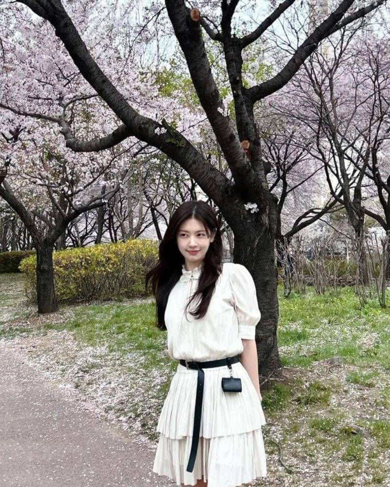 Jung So-min tampak semakin cantik dan manis saat mengenakan dress putih. Warna putih ini membuat kulitnya terlihat lebih cerah, sementara bagian bawah dress yang bergelombang menambah kesan stylish meskipun sederhana.