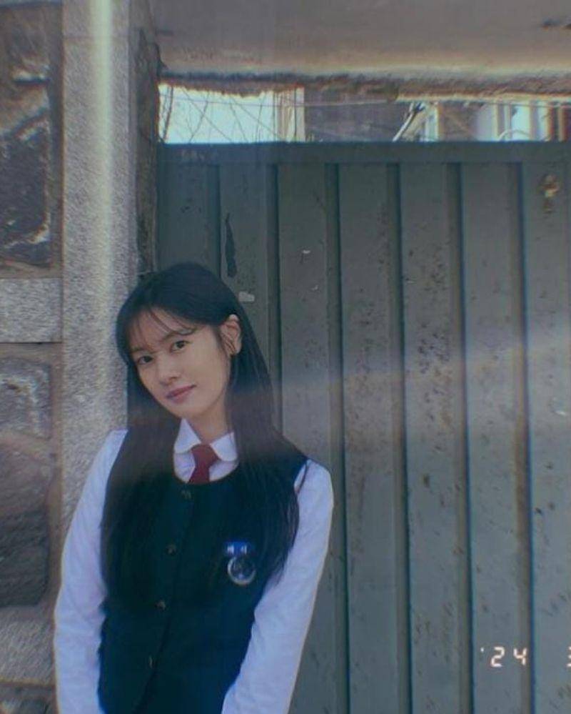 Dalam beberapa adegan, kamu akan melihat Jung So-min mengenakan seragam sekolah. Penampilannya terlihat simpel dan menggemaskan, membuatnya tampak lebih muda dari usia sebenarnya. Rambutnya ditata rapi dengan tambahan pita di bagian belakang, melengkapi kesan youthful dan segar.